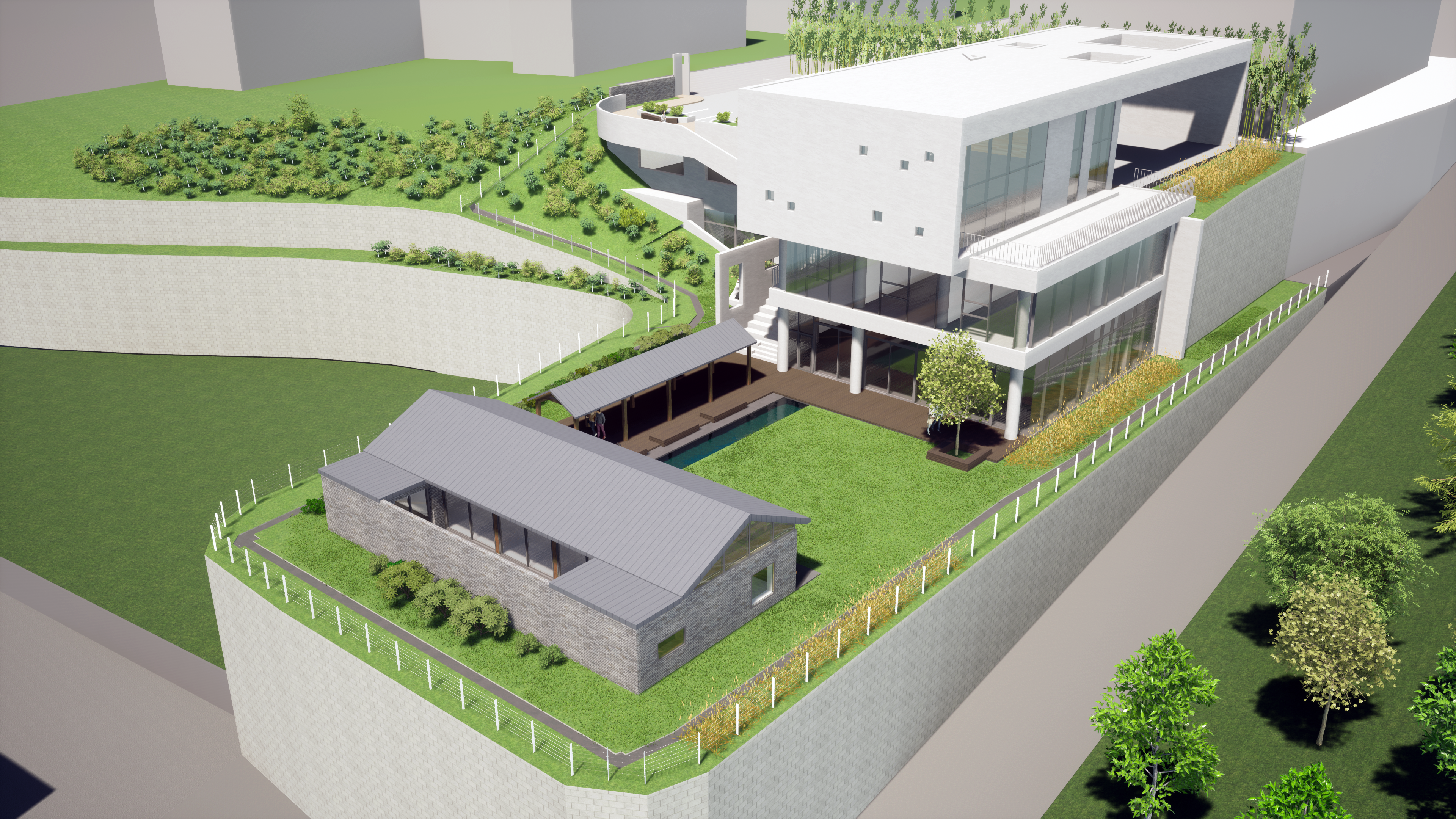 용인 공세동 복합단지에 조성된 경사부지에 계획한 베이커리 공장입니다.